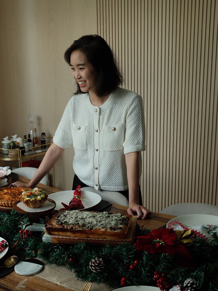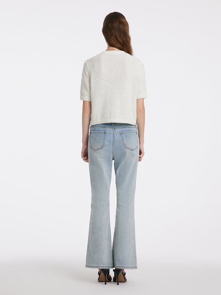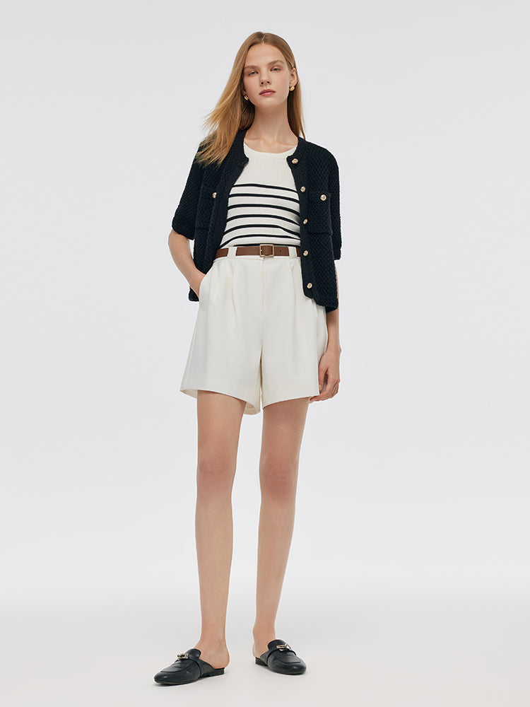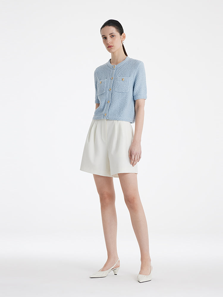 The knitted cardigan is designed in a popular tweed style, which is classic and timeless. The fit is loose and moderate, not too tight or too loose, making it easy to show an elegant temperament. It is made of high-quality cotton fabric, which is soft and comfortable, with good breathability, making it very comfortable to wear. It is very versatile and practical and can be worn with various inner layers and bottoms. The metal buttons add a touch of refinement.