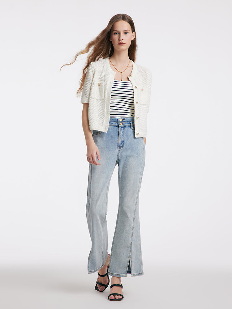 Openwork Round Neck Knitted Women Cardigan